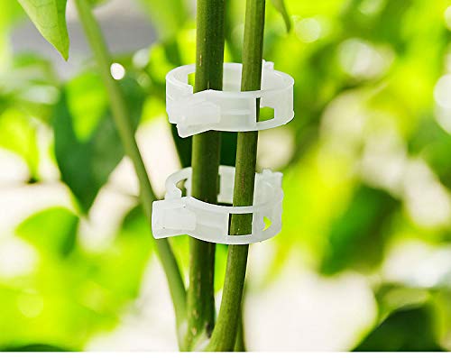 100 Counts of plant support clips designed for garden, vine, and vegetable use. These white plastic trellis clips help keep plants upright and healthy. Perfect for supporting climbing plants and ensuring they grow strong.