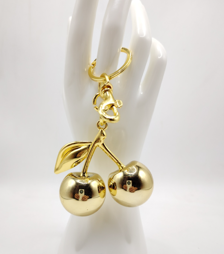 Eye - Catching Design:Two glistening red cherries are gracefully connected to golden stems and leaves. The harmonious color combination creates a whimsical and captivating charm, making it an instant head - turner.