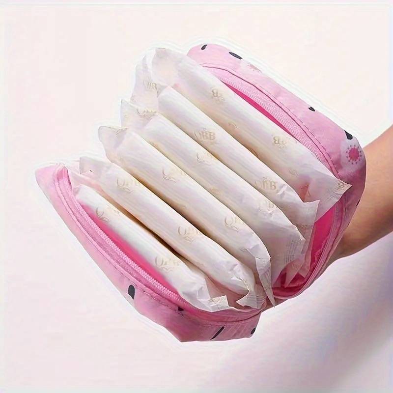 Multi- functional: This bag can be used as a sanitary napkin storage bag, cosmetic bag, or digital accessory storage bag, meeting various storage needs.