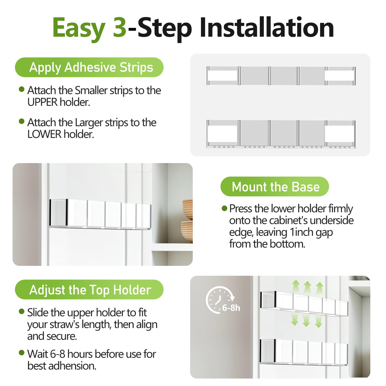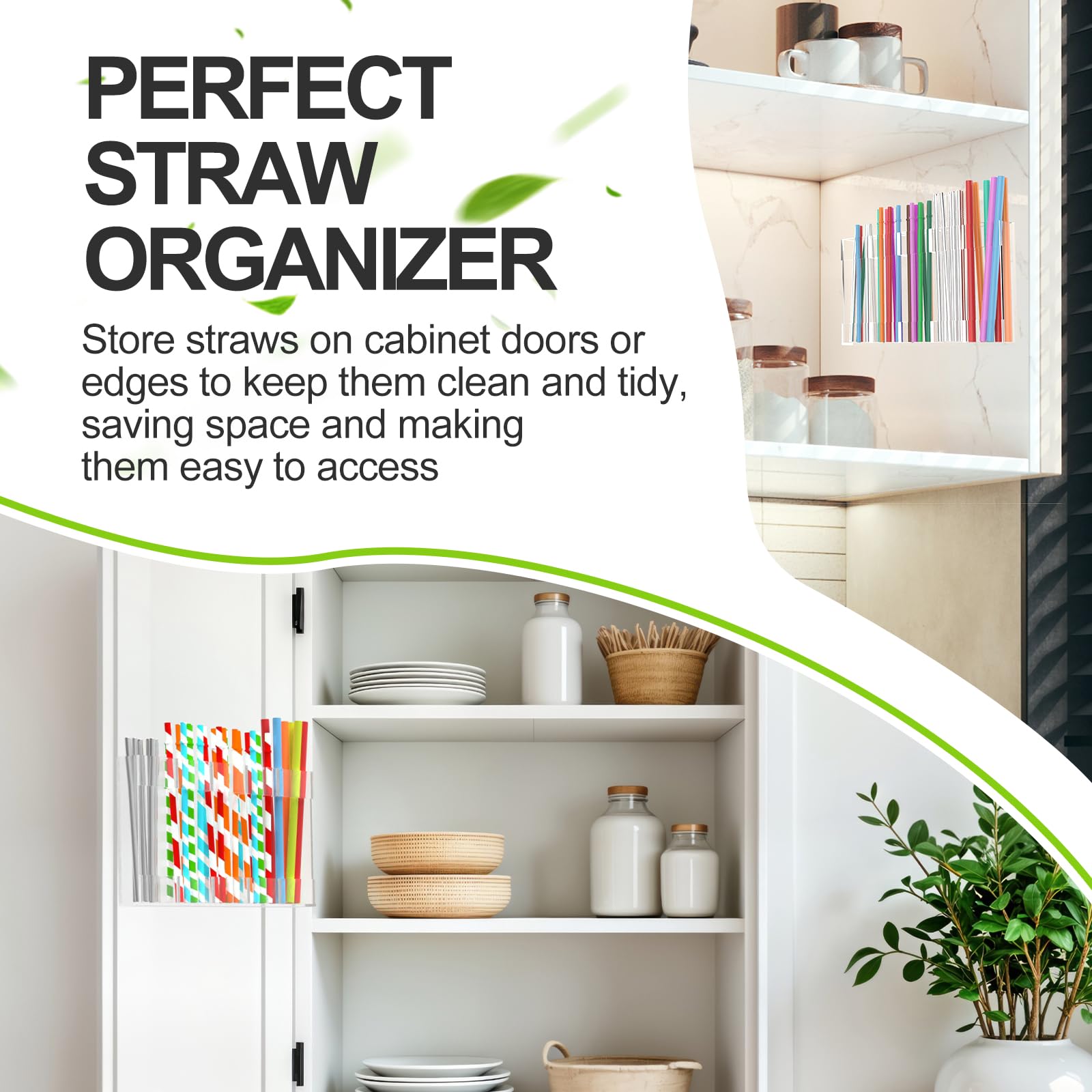 Introducing the Straw Holder for Cabinet Door! This 9.8" adjustable organizer is perfect for keeping your straws tidy. It features two parts for efficient straw storage. The clear acrylic material ensures visibility of your straws. Ideal for kitchen cupboards, it keeps your space organized.